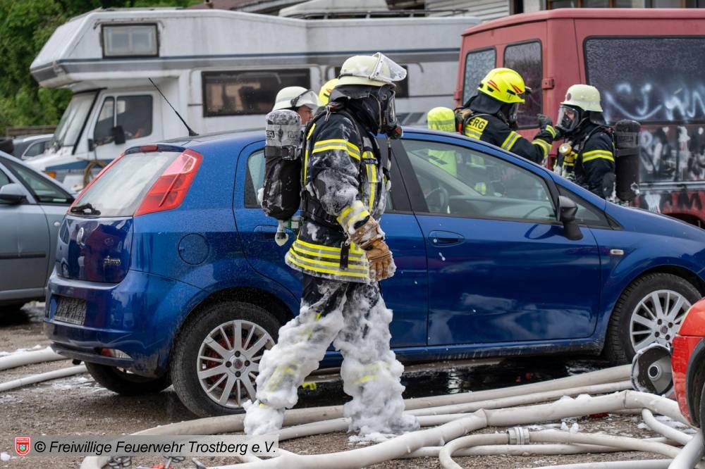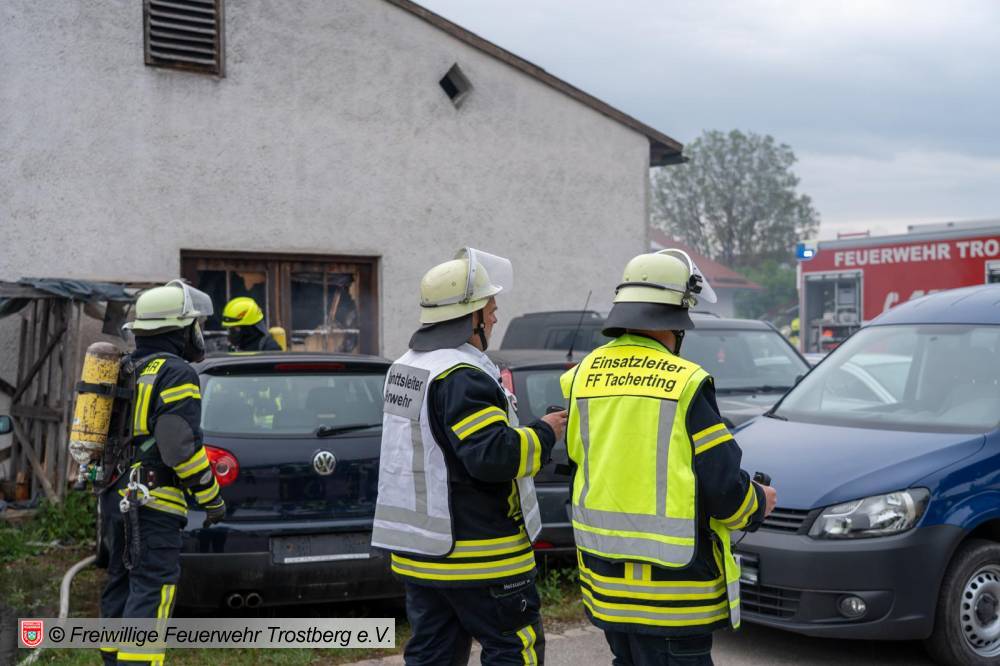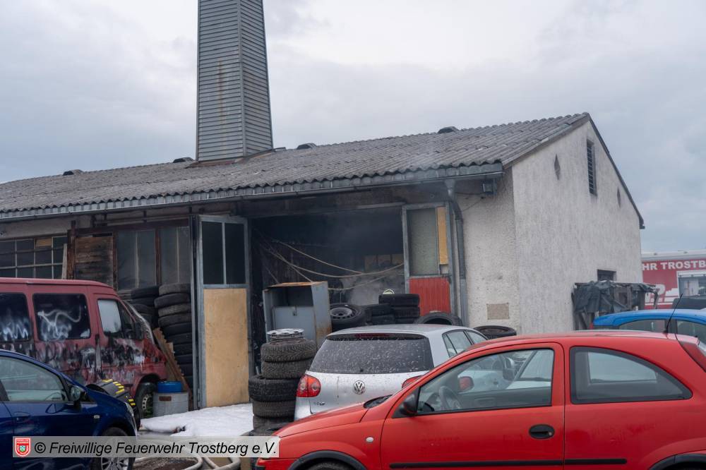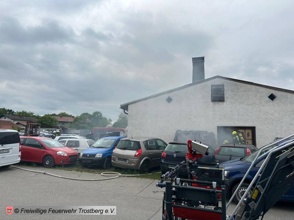 Brand eines PKW in einer Lagerhalle die als Werkstatt genutzt wird. Bilder von 112news-Chiemgau
